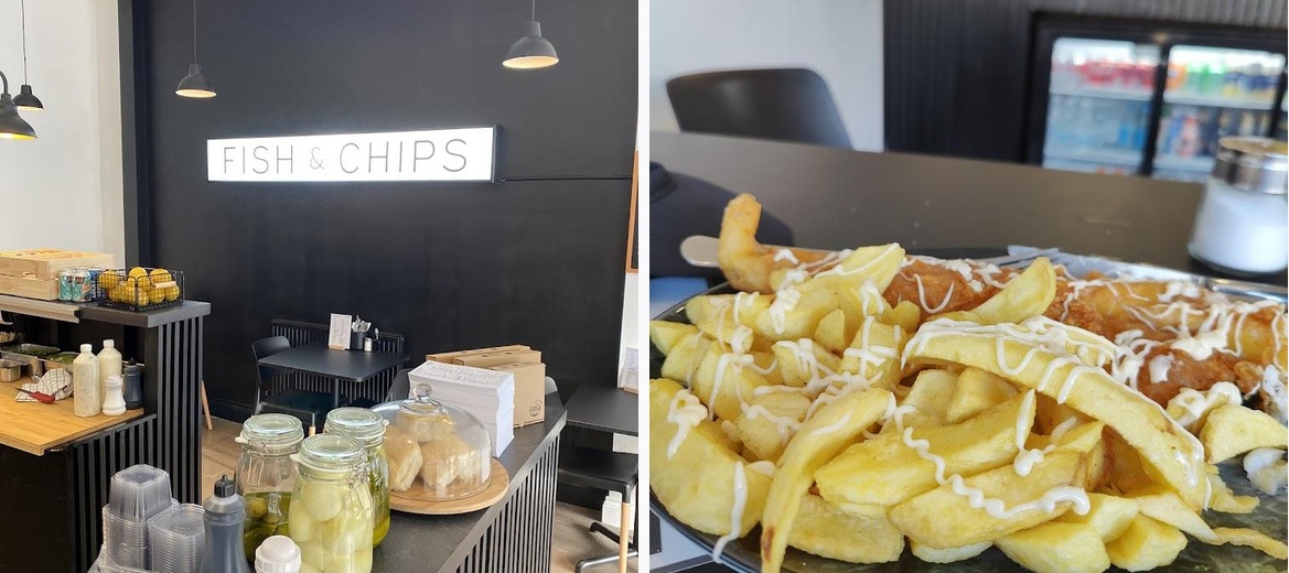 We dined in and had a delicious meal. The staff were very friendly to everyone that walked in and lots of regular customers. The tables were simple but clean and its nice to have a modern fish & chip shop! Food was very fresh and tasty Only negatives I'd say about eating in is the smell of the oil but didn't put us off. We'd happily come back and dine in again. When we went to pay for the bill I would have liked to see it itemised, but we were just told the total but it's sometimes a nice option to see what you're paying for